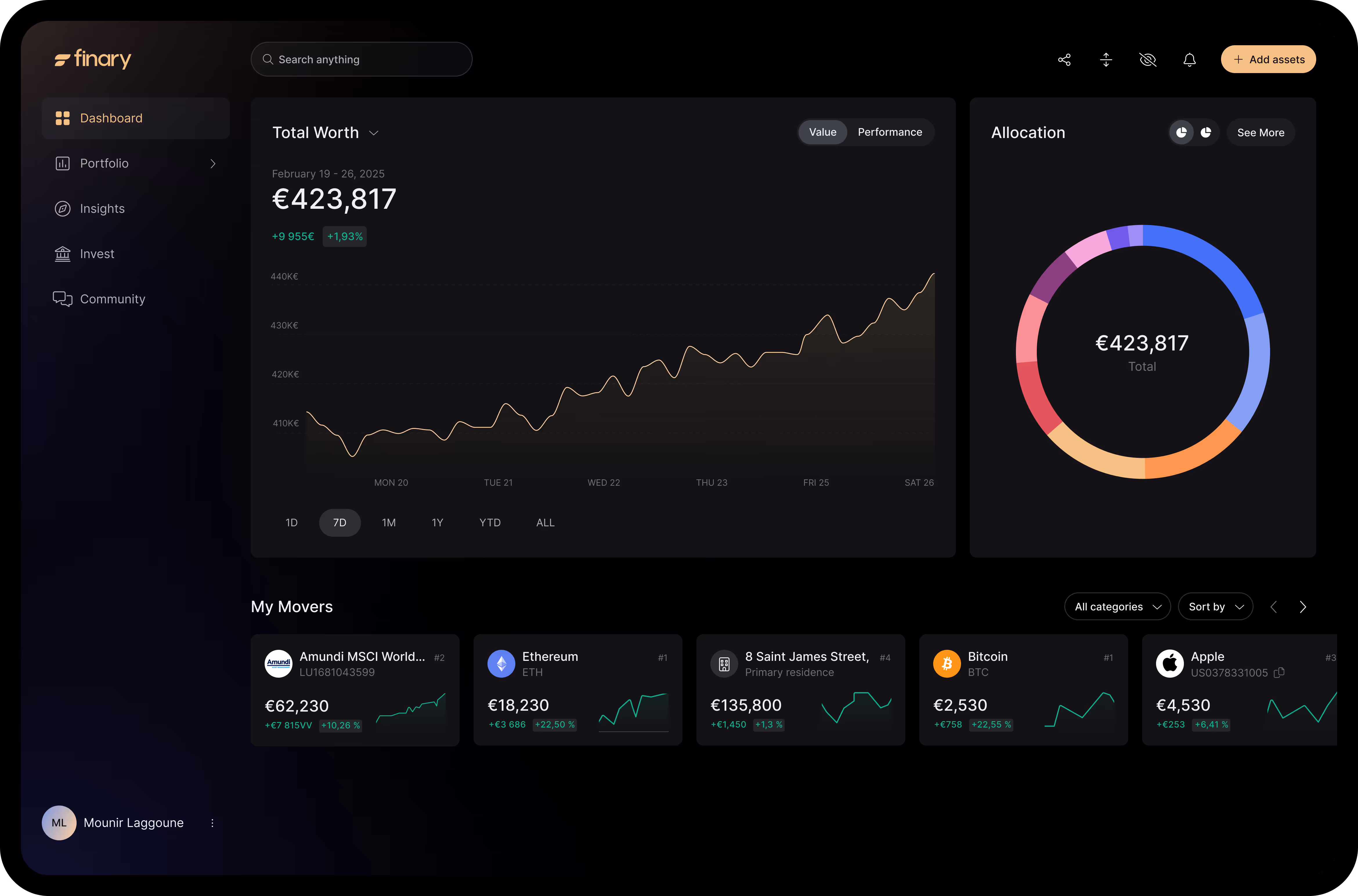 Finary Lite members can connect all their personal accounts—banks, brokerage, real estate—and access lower fees on our investment products*.