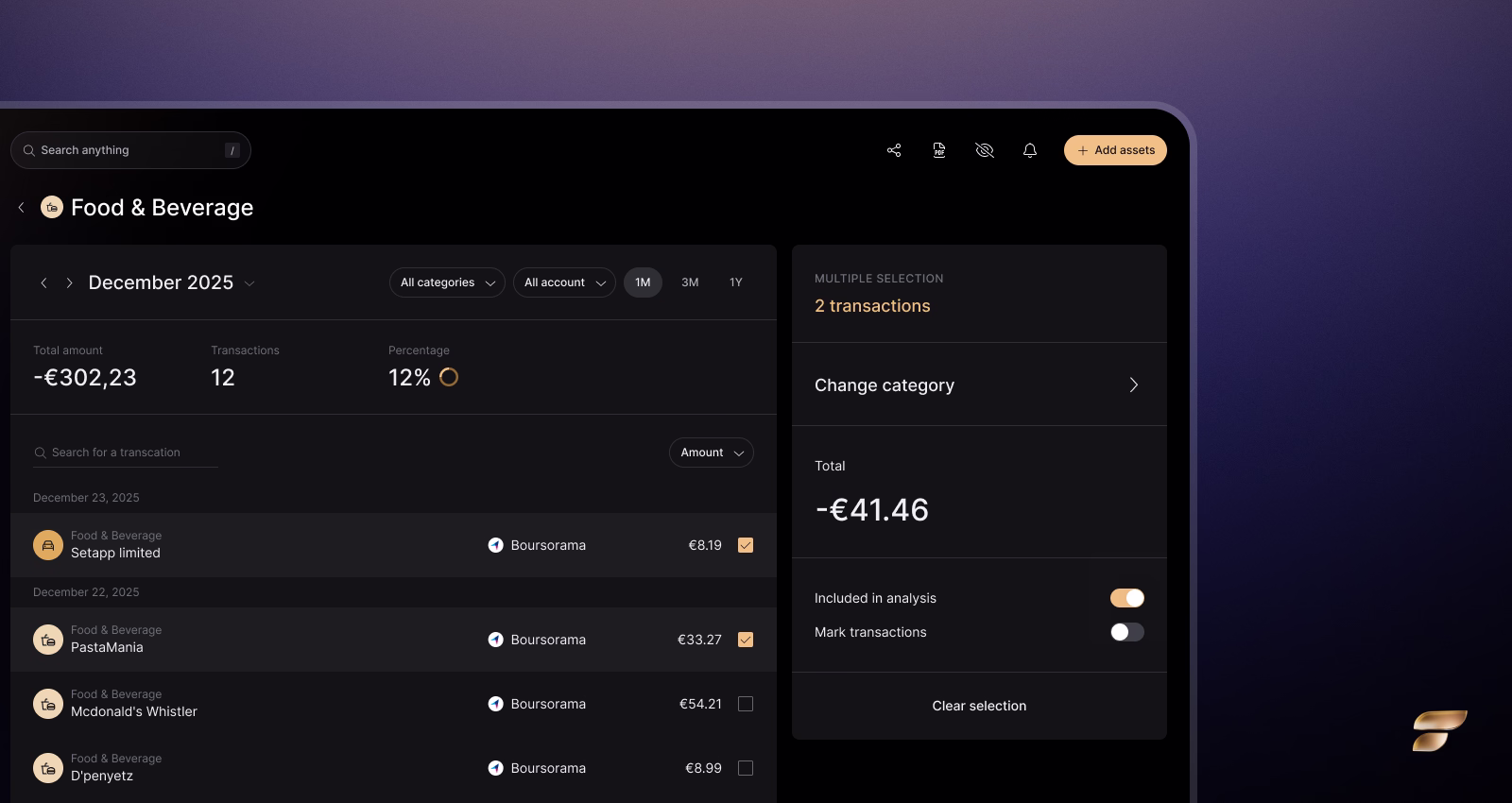 In parallel, we're working on a structural evolution of wealth tracking: building an agnostic system that allows creating manual transactions even when synchronization is finicky.