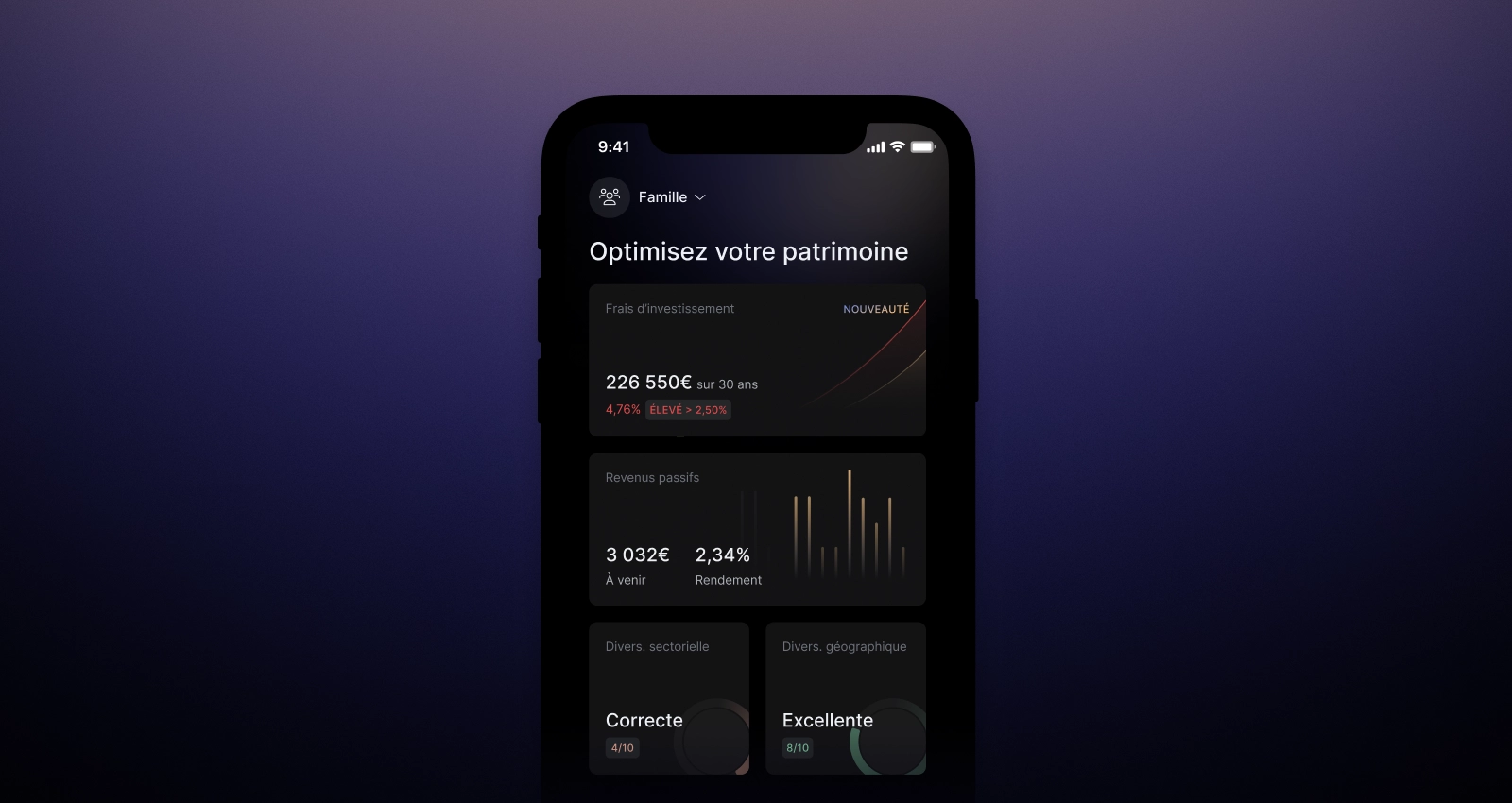 Suivre son patrimoine, c’est bien. L’optimiser, c’est mieux ! La section analyse vous permet de rapidement identifier les points forts et faibles de votre patrimoine. L’équipe mobile a pris du temps pour rendre cette section plus lisible. L’ensemble des indicateurs clés sont désormais visibles en un clin d’oeil et peuvent facilement être explorés.
