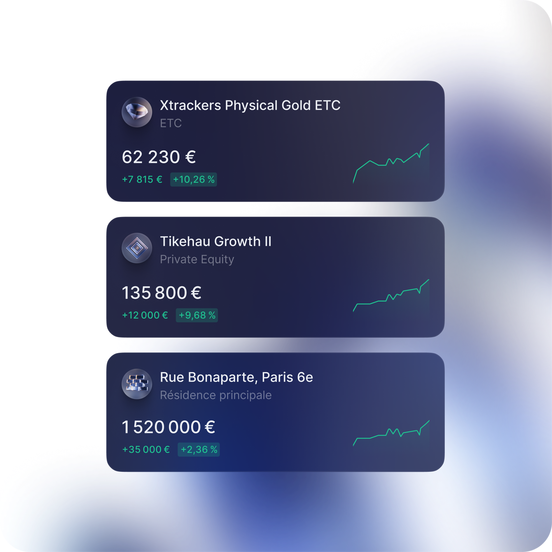 Vous accédez à des stratégies patrimoniales éprouvées : assurance-vie luxembourgeoise, Private Equity, SCPI, Crédit Lombard, gestion passive via ETF, produits structurés, crypto-actifs, etc. Chaque solution est sélectionnée pour sa qualité, sa pertinence, et son alignement avec vos objectifs.